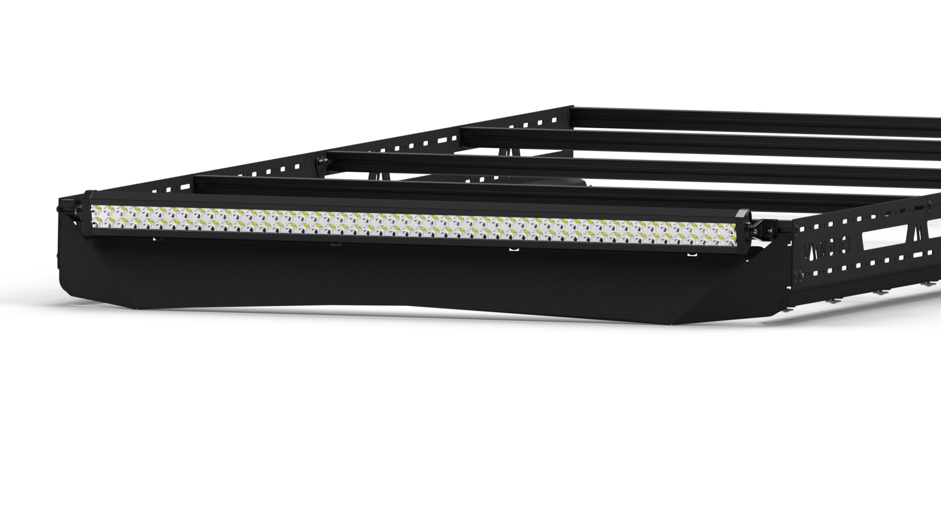 Profil avant épuré avec déflecteur intégré (espacement de 50po. pour ajouter une barre de lumière LED - capuchon de finition fourni si cet espace n’est pas utilisé)